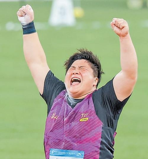 11月16日,巩立姣庆祝胜利。 河北日报记者 耿辉摄